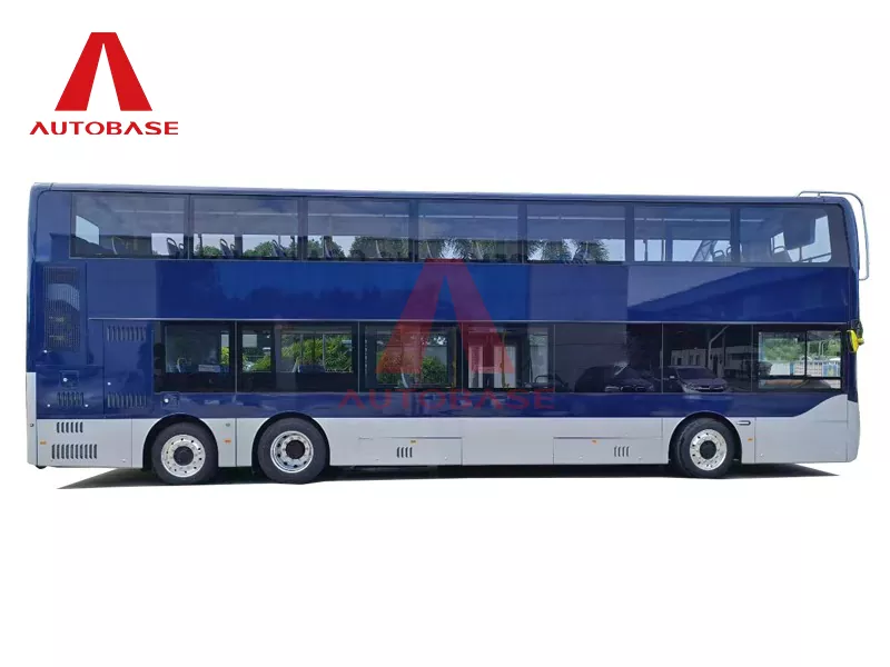 ही 12 मीटर शुद्ध इलेक्ट्रिक डबल-डेकर बस, चीनमध्ये एका आघाडीच्या निर्मात्याने डिझाइन केलेली आणि बांधलेली आहे, अत्याधुनिक कारखान्यात उत्पादित केली जाते आणि विश्वासार्ह पुरवठादाराद्वारे ऑफर केली जाते. संपूर्ण वाहन 12000 मि.मी. लांब पुढील आणि मागील मजले, 4250 मि.मी. उंची, 5950+1500 मि.मी. चा व्हीलबेस आणि ≥1000 मि.मी.च्या निव्वळ रुंदीसह समोरचे/मध्यम दरवाजे आहेत. याचा कमाल वेग 90 किमी/तास आहे आणि यात 82+1 आसनांची आसनव्यवस्था आहे, एकूण 98+1 प्रवाशांची क्षमता आहे, ज्यामध्ये 55 वरच्या डेक सीट, 27 लोअर डेक सीट्स, 2 फोल्डिंग सीट्स आणि 4 प्राधान्य आसनांचा समावेश आहे.